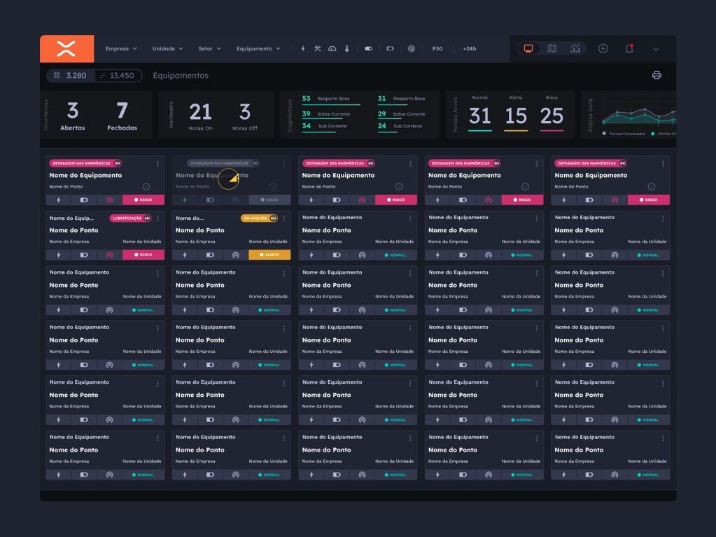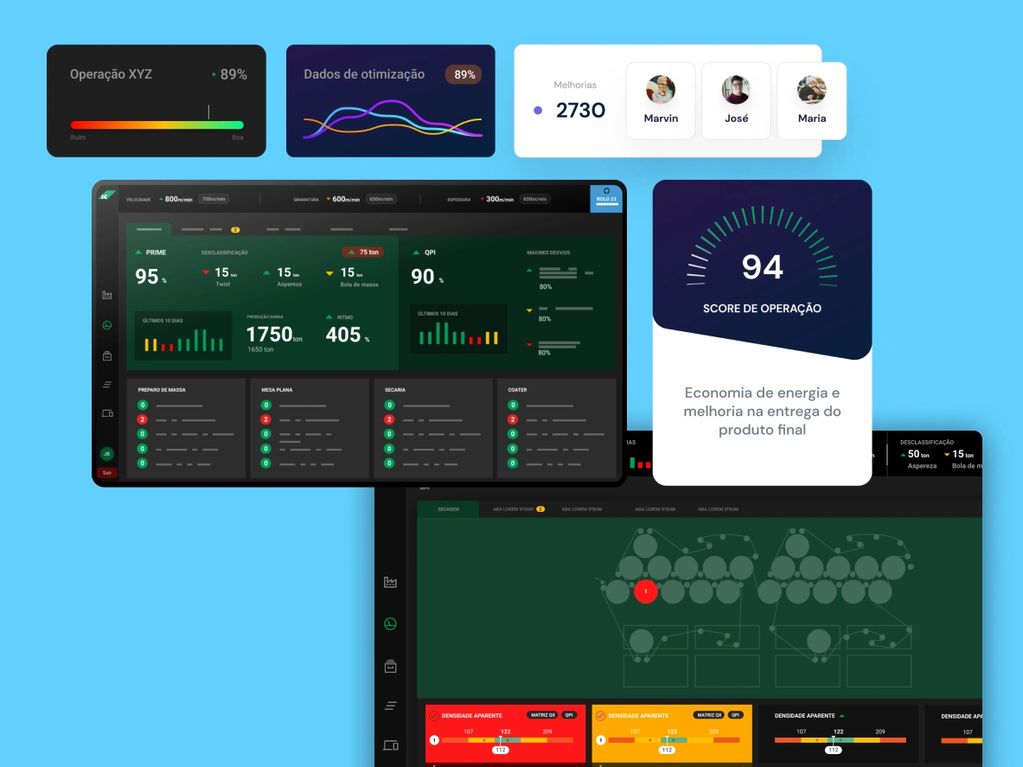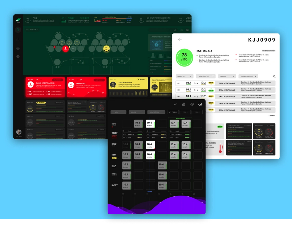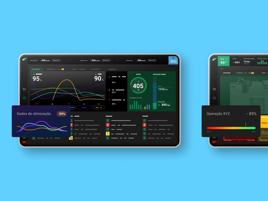 The challenge was to create a digital product capable of monitoring all of the machines in the industry, generating alerts and data for constant analysis by technicians who monitor each stage of production through various screens.